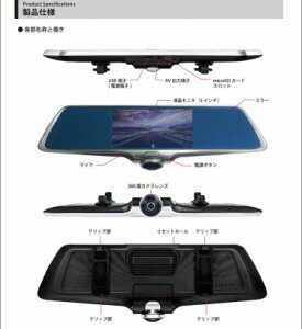 スペック ・本体サイズ:約幅310×高さ100×奥行30mm ・本体重量:約242g ・対応電源:12V車専用 シガーソケットより給電 ・内蔵バッテリー:3.7V 180mah ・インターフェイス:mini USB 2.0 ・撮影時間:microSDメモリーカード32GBで約5時間30分 ・音声:マイク、スピーカー内蔵 【付属品】 ・専用シガーソケットアダプタ ・付属取付バンド(2本)×1 ・取扱い説明書 【ご注意】 ※本製品にmicroSD/SDHCカードは付属しておりません。