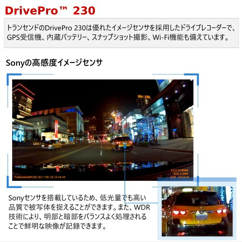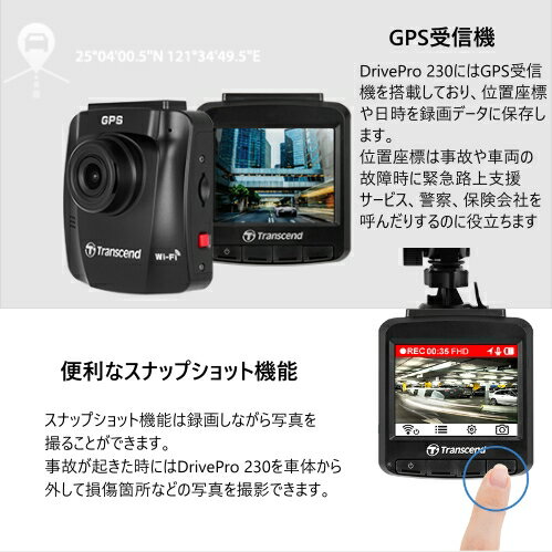 Transcend DrivePro 230 トランセンドジャパンSONY製 高感度画像 センサー搭載 ドライブレコーダートランセンド Wi-Fi GPS【smtb-ms】0590799