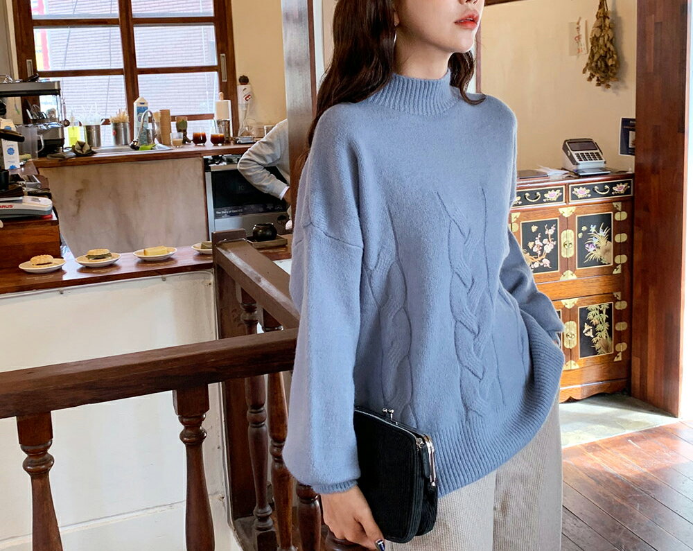 ツイストラインニット・全3色 b54515 レディース【tops】【トップス ニット ハーフネック 長袖 ゆったり ルーズ ツイスト ツイストニット パステル パステルカラー 無地 大人 カジュアル 秋 冬】