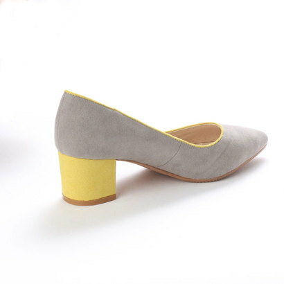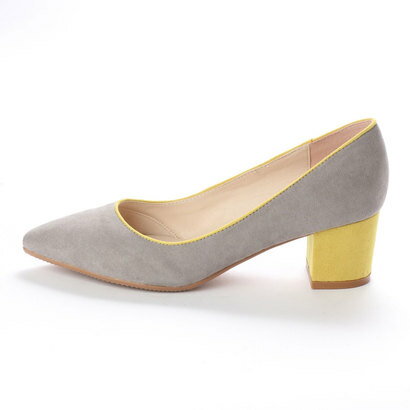 <デザインポイント> 鮮やかなカラーバリエーションが目を引くバイカラーコンビチャンキーヒールパンプス。