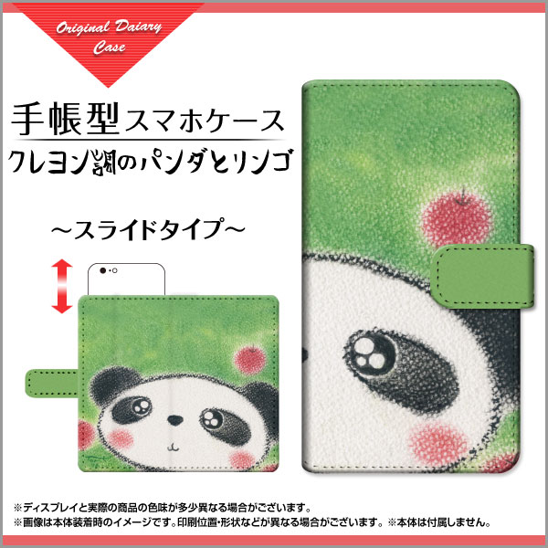 【メール便送料無料】手帳型 スライド式 格安スマホZenFone 5/5Z/5 LiteGalaxy S9/S9+Xperia XZ2/XZ2 CompactHUAWEI P20/P20 Pro/Mate RSクレヨン調のパンダとリンゴやの ともこ デザイン[ ダイアリー型 ブック型 スライド式 ]