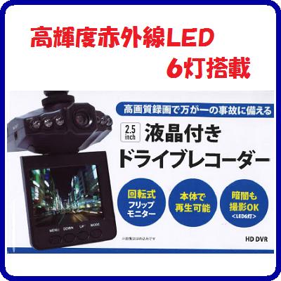 2.5インチ液晶付ドライブレコーダー回転式フリップモニター【 本体で再生可能 】高輝度赤外線LED