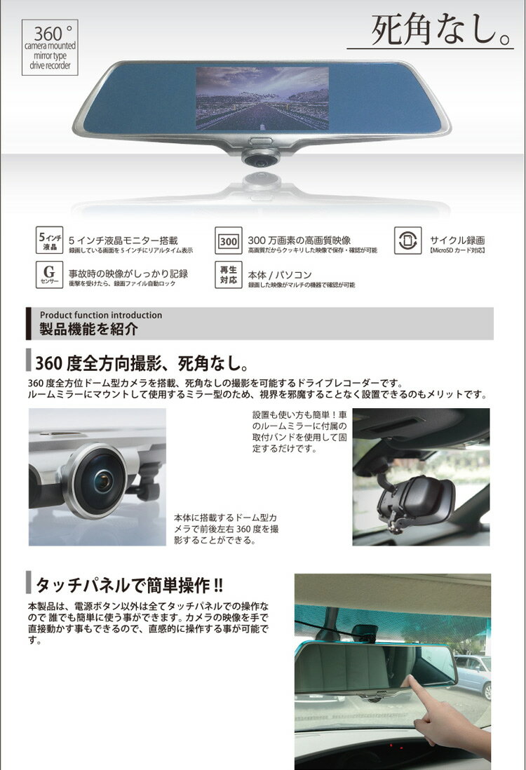 360°カメラ搭載ミラー型ドライブレコーダー SLI-ALV360 前後左右撮影 全方向録画 DC12V車専用 車載カメラ【あす楽対応】【smtb-f】【送料無料】