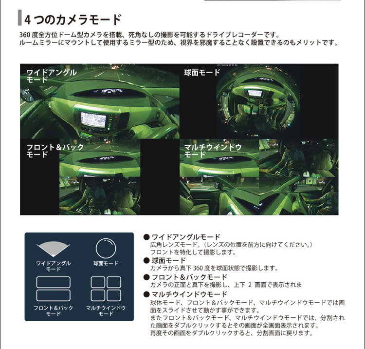 【商品説明】ミラーに取り付けるだけで360度全方位死角なし撮影できます。